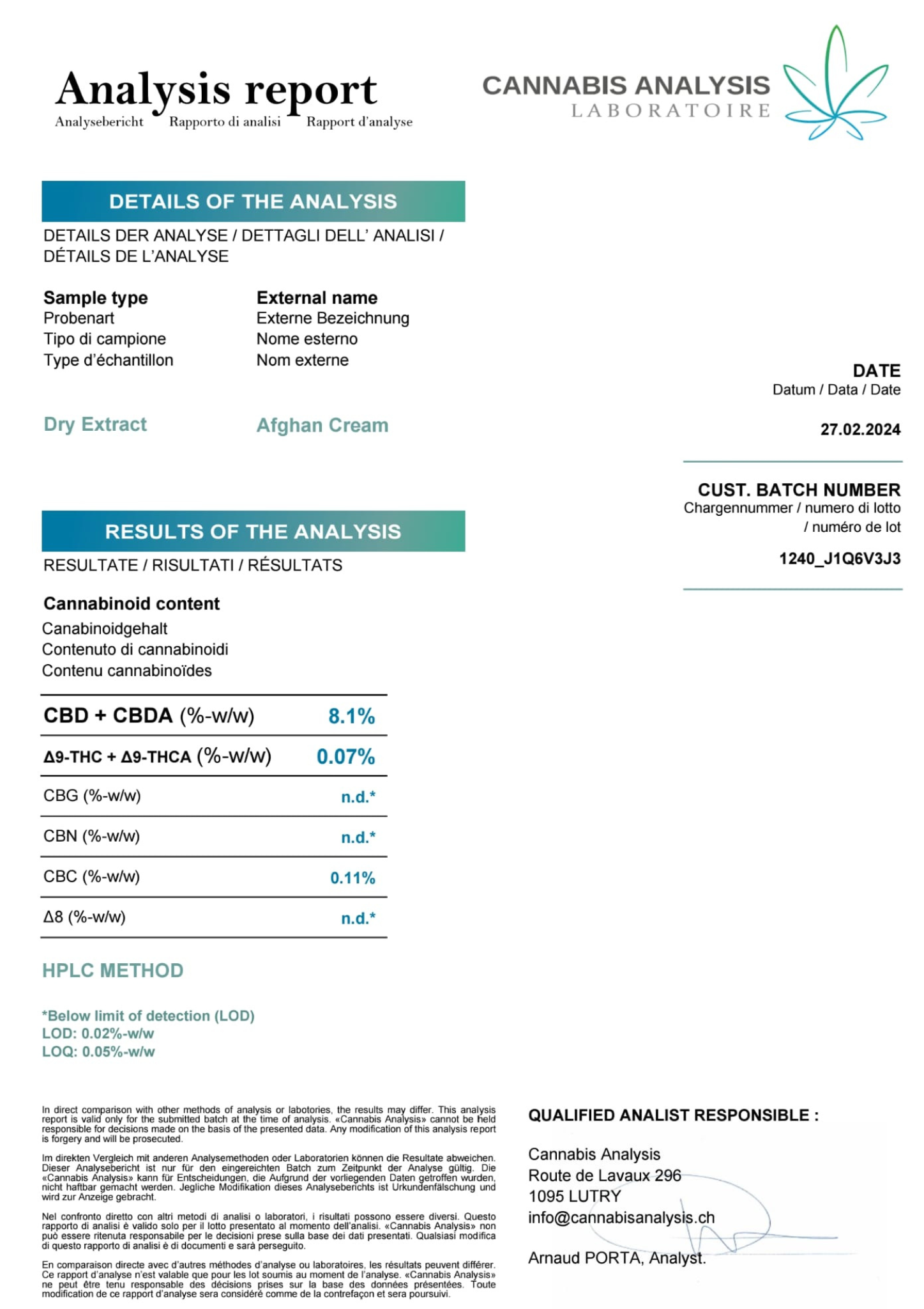 The Moroccan Cream CBD Extract contains only trace amounts of THC (less than 0.2%), making it a non-psychoactive product that won’t alter your mental state. You can enjoy the therapeutic benefits of CBD without worrying about any “high”. This makes the cream suitable for daily use, whether at home or on the go, providing relief without interrupting your daily activities.